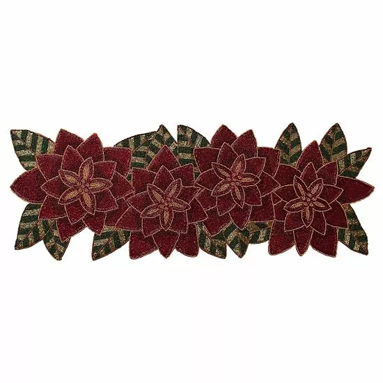 Get your home holiday ready with this St. Nicholas Square Beaded Poinsettia table runner.