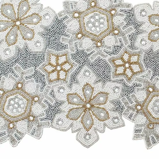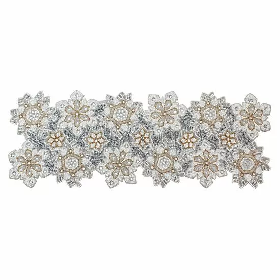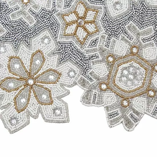 Get your home holiday ready with this St. Nicholas Square Beaded snowflake table runner.
