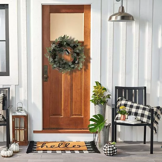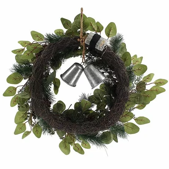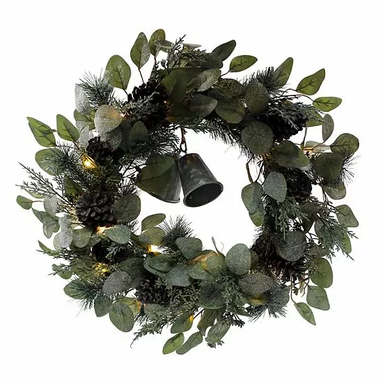 You can’t go wrong with this festive St. Nicholas Square Bell Artificial Greenery Wreath.