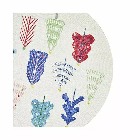 Give your dining space a holiday makeover with this St. Nicholas Square colorful tree braided placemat.