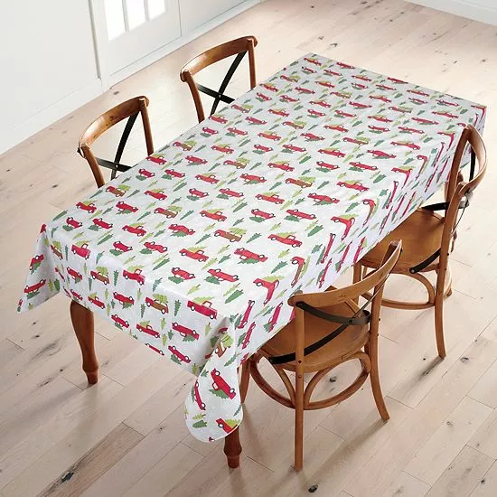 Get your home holiday ready with this St. Nicholas Square Farmhouse Truck vinyl tablecloth.
