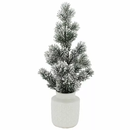 You can’t go wrong with this festive St. Nicholas Square Flocked Artificial Pine Tree Floor Decor.