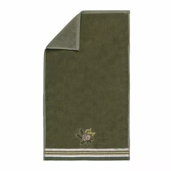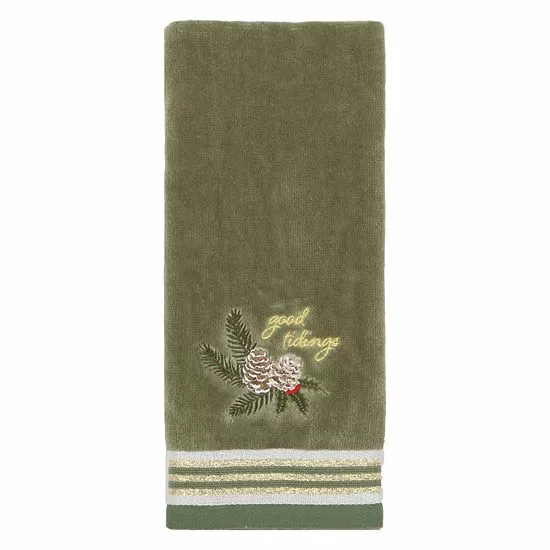 Add a festive look to your bathroom with this St. Nicholas Square® Good Tidings Hand Towel.