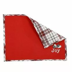 Give your dining space a holiday makeover with this St. Nicholas Square Joy white farmhouse plaid placemat.