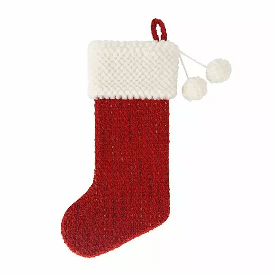 Add a festive look to your space with this lovely St. Nicholas Square® Memory Lane Red Stocking With Pom Poms.