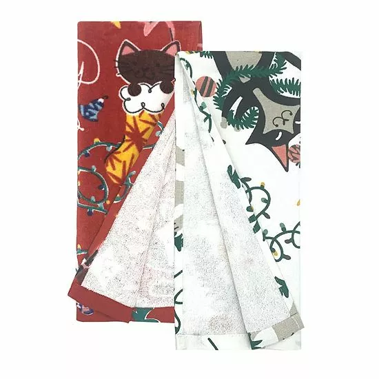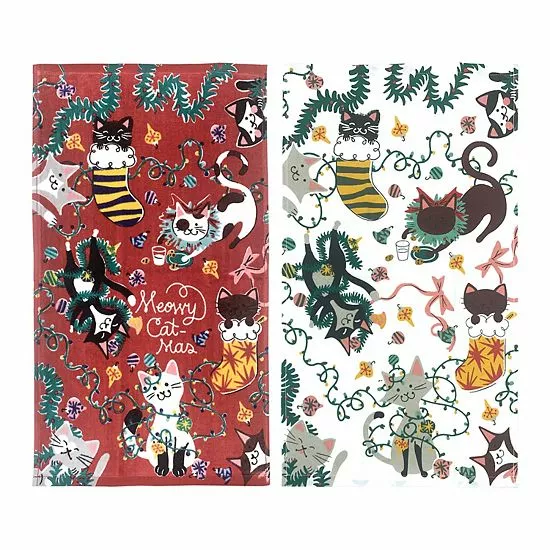 Deck the halls, or the kitchen, with these festive St. Nicholas Square Meowy Catmas Cat kitchen towels.