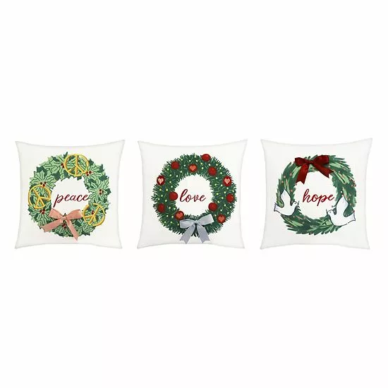 Create a festive feeling with this seasonally stylish St. Nicholas Square® Peace, Hope, Love 3-pack Throw Pillow Set.