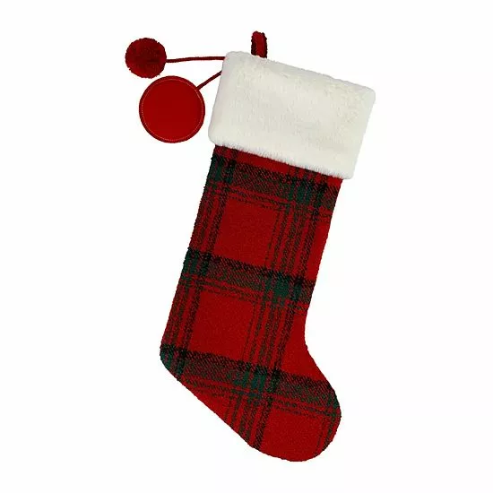 Celebrate Christmas with this festive St. Nicholas Square Plaid Monogram Christmas Stocking.