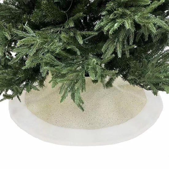 Create the perfect holiday ambiance with this St. Nicholas Square® White & Gold Tree Skirt.